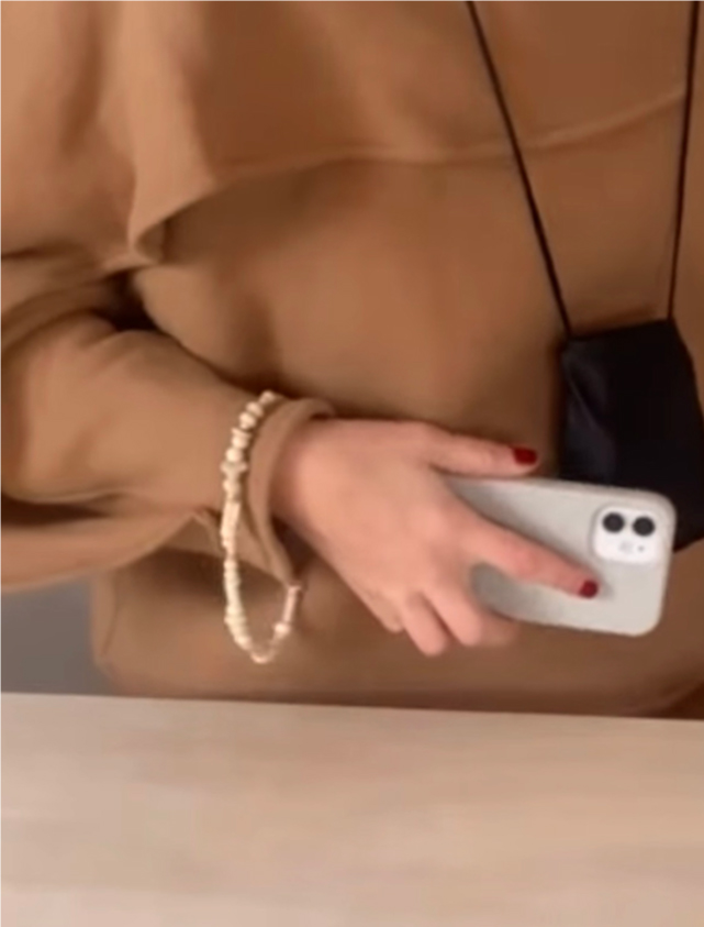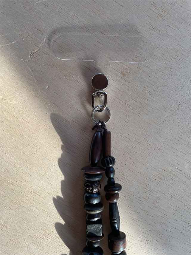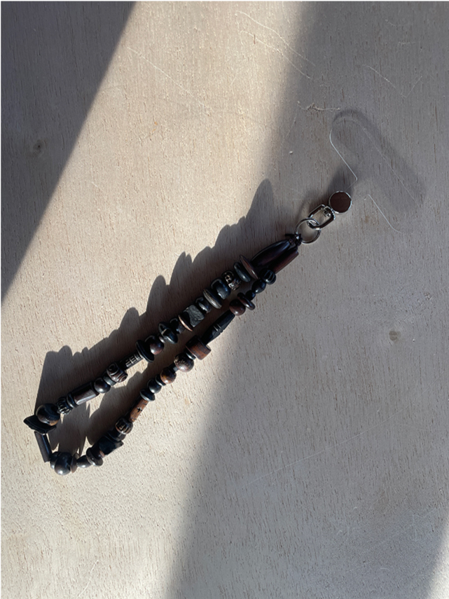 Introducing our exclusive collection of phone wristlets, each piece is a made from antique bone beads in a varying range of tonal colors. Guided by form and function, the phone wristlets are hand-strung on a bamboo cord with shiny silver tone hardware. No two are exactly alike. Each one reflects the subtle irregularities that make it singular. A reminder that beauty often lives in what cannot be replicated. Only 1 available.
