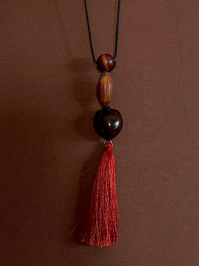 Introducing our exclusive collection of Wabi-Sabi tassel necklaces, each piece is a meditation on balance of texture and form. Guided by the Japaense Wabi-Sabi philosophy of finding beauty in imperfection, each necklace is composed of hand-strung beads in a thoughtful mix of materials. No two are exactly alike. Each one reflects the subtle irregularities that make it singular. A reminder that beauty often lives in what cannot be replicated. Only 1 available.